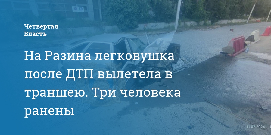 На Разина легковушка после ДТП вылетела в траншею. Три человека ранены