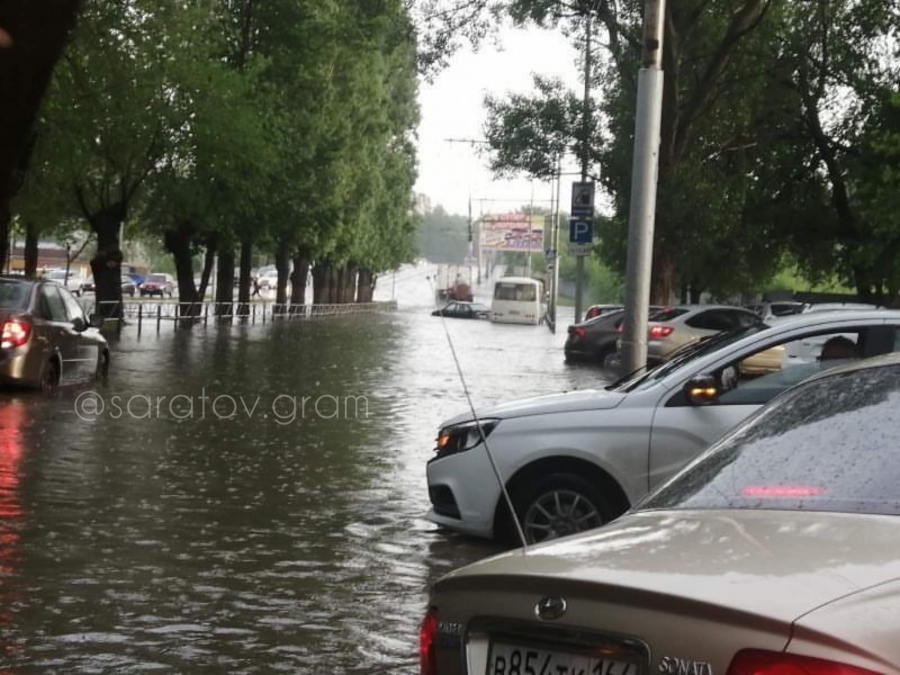 Сегодня вечером, 8 июня, в Саратове прошел мощный ливень с градом, из-за которого дороги города оказались сильно затопленными. Очевидцы поделились в соцсетях фотографиями и видео с улиц.