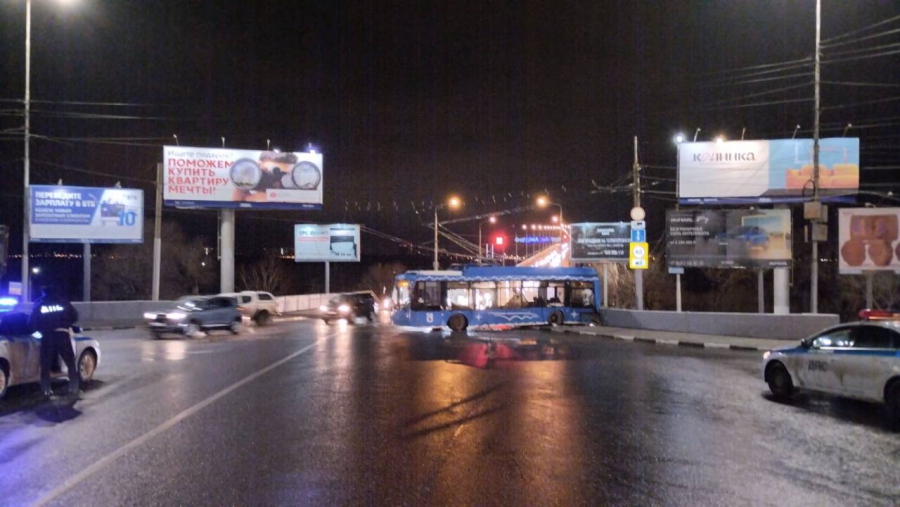 По предварительным данным, в 7.00 на Славянской площади водитель 1970 года рождения, управляя троллейбусом маршрута №109 (Саратов-Энгельс), наехал на ограждение моста.