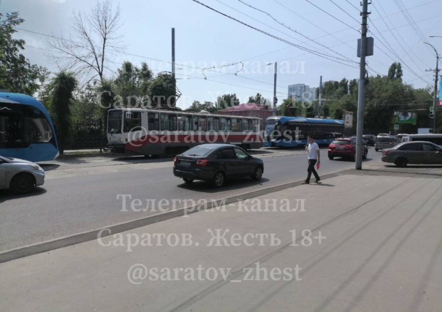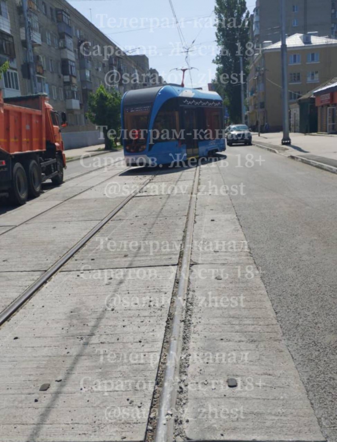 В Саратове новый трамвайный вагон сошел с рельсов. Об этом рассказали очевидцы в телеграм-канале «Саратов. Жесть».