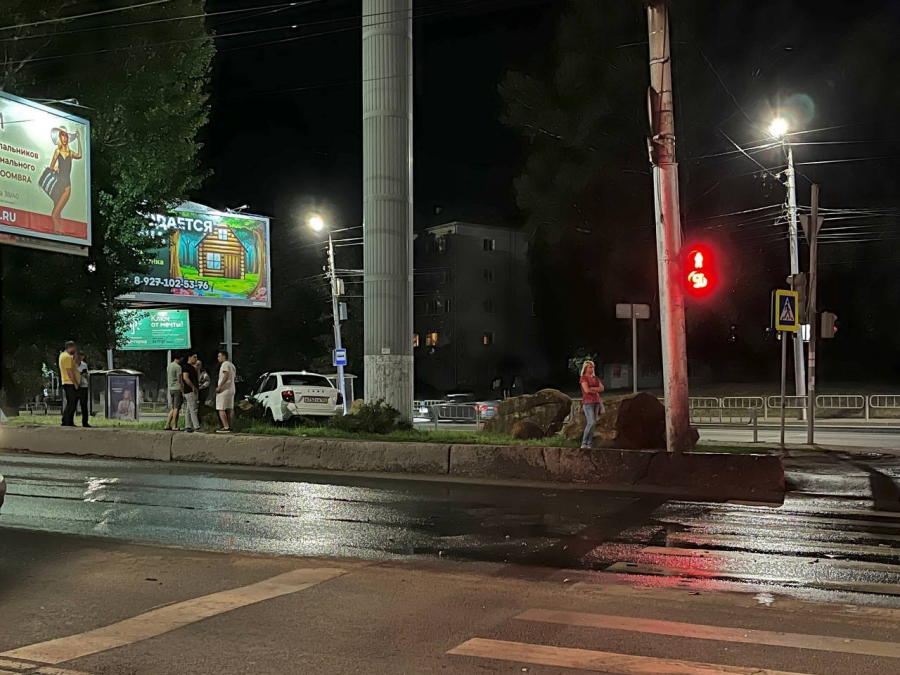 Авария случилась поздно вечером на пересечении улиц Тракторной, Украинской и проспекта 50 лет Октября (при въезде на мост на Стрелке). В результате ДТП белая «Лада Гранта» вылетела с дороги через тротуар на зеленую зону, а у черной машины отлетело колесо.