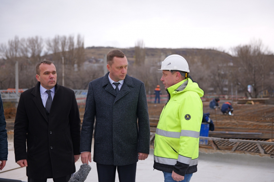 Глава региона посетил место реконструкции путепровода на Стрелке. Работы там проводятся параллельно с модернизацией трамвайной сети. Подрядчик в настоящее время приступил к бетонной заливке пролетов. На других участках продолжается устройство песчаного основания и армирование плит.