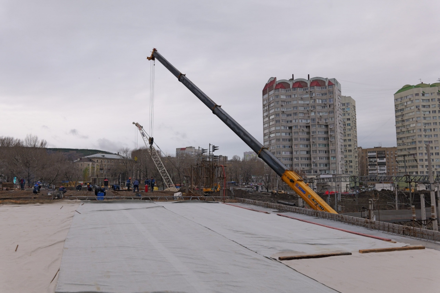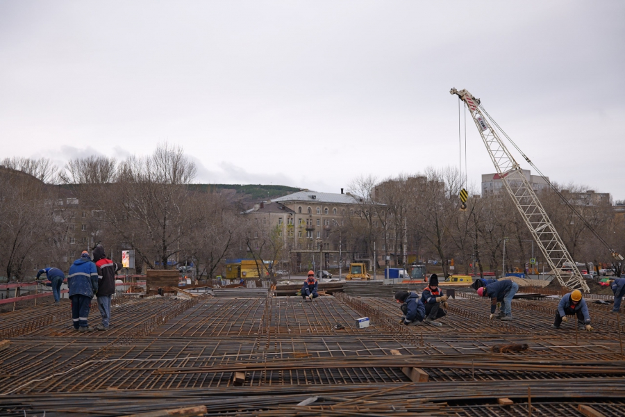 На Стрелке в рамках реконструкции путепровода начали бетонную заливку пролетов