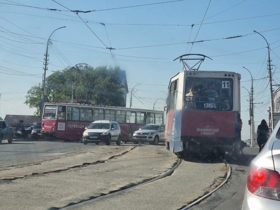 На Танкистов трамвай №11 сошел с рельсов и перегородил дорогу