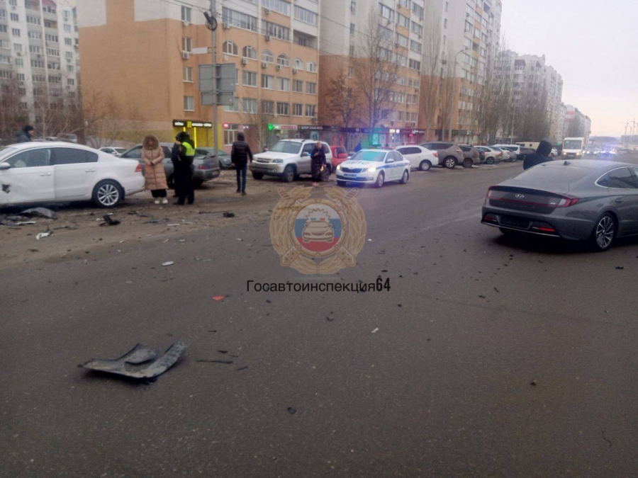 В Кировском районе Саратова из-за массового ДТП с участием пяти автомобилей пострадала женщина. Об этом сообщили в городском отделе ГИБДД.