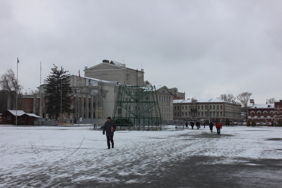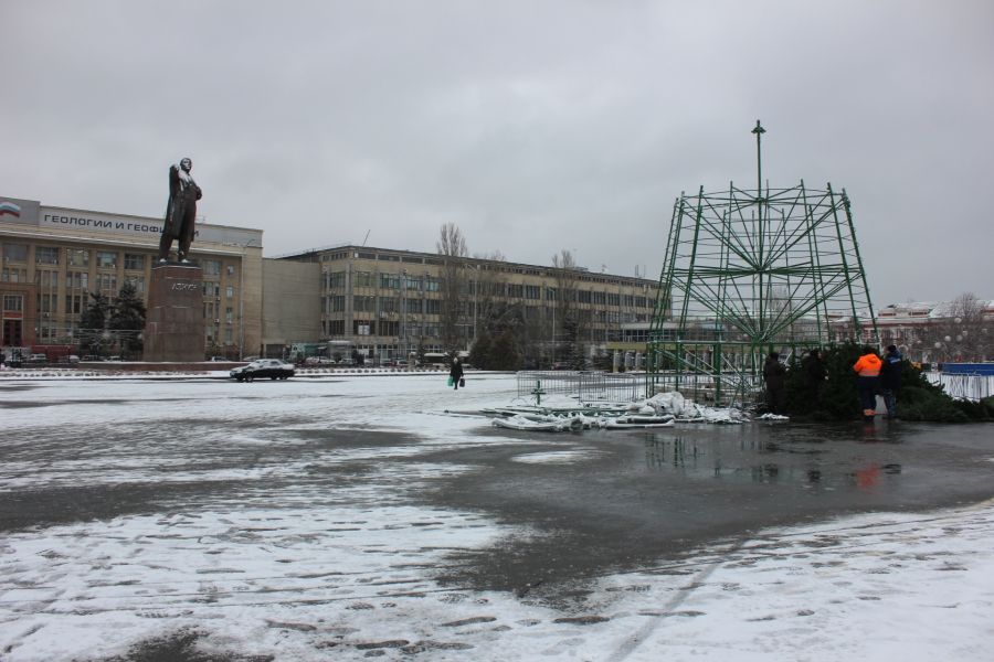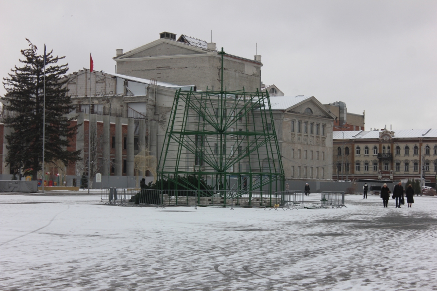На Театральной площади начали восстанавливать сломанную ветром главную елку