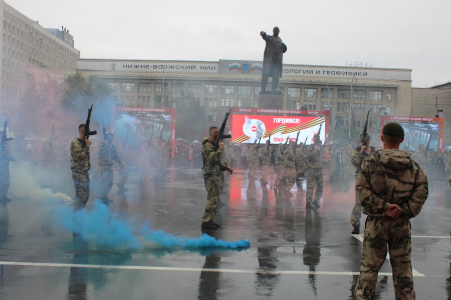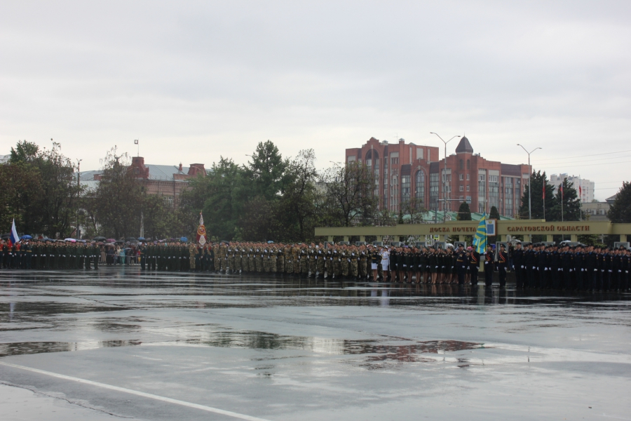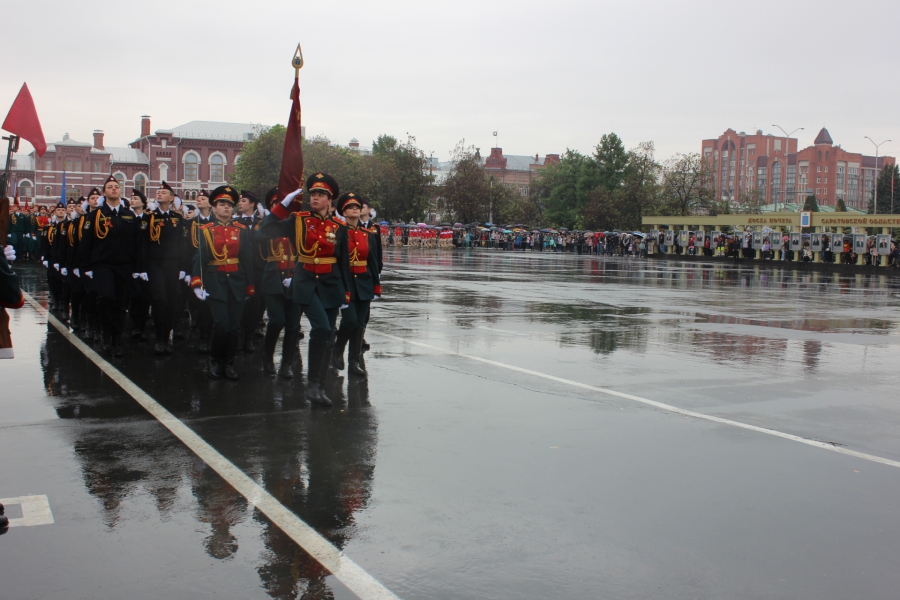 Несмотря на холодную и дождливую погоду, тысячи саратовцев пришли на площадь, чтобы посмотреть на прохождение военных. Многие граждане посетили мероприятие с детьми, которые с интересом наблюдали за происходящим. Среди почетных гостей были ветераны, губернатор области Роман Бусаргин, глава города Михаил Исаев.
