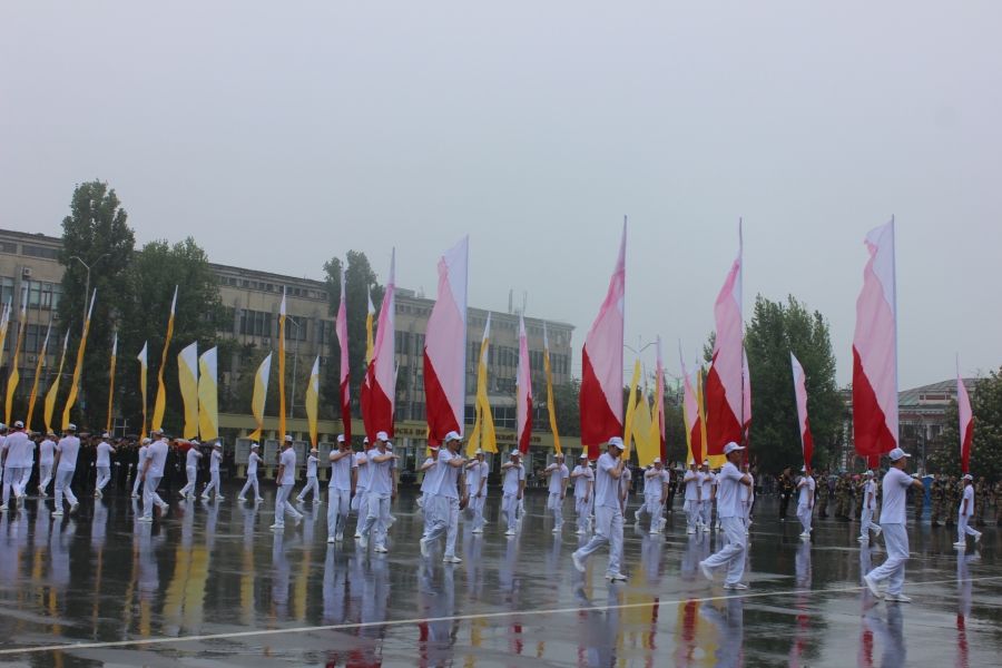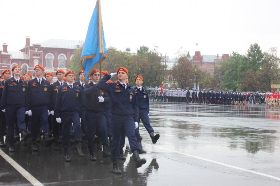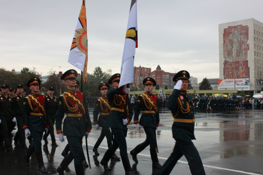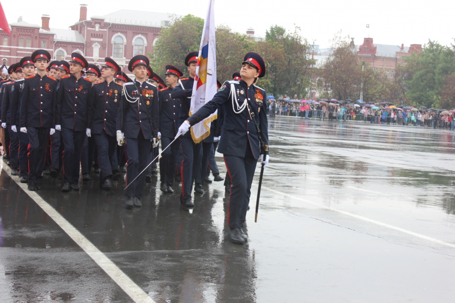 Все началось с объезда колонн, в ходе которого командование поздравило участников парада с юбилейной датой. Все это сопровождалось троекратным «Ура!». После этого по площади стройными рядами прошли воспитанники и представители силовых ведомств, в числе которых Росгвардия, МЧС, МВД и другие. Юные кадеты показали зрелищные и яркие выступления, в полной мере продемонстрировав публике свою подготовку. И хотя на улице шел дождь, они ответственно выполнили свою программу.