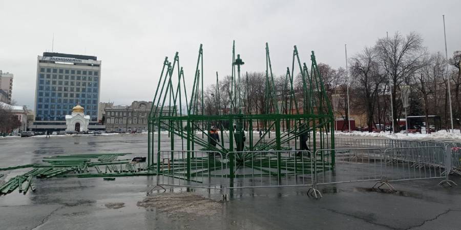 В Саратове на Театральной площади приступили к установке новогодней елки. Об этом сегодня, 4 декабря, сообщили в городской администрации.