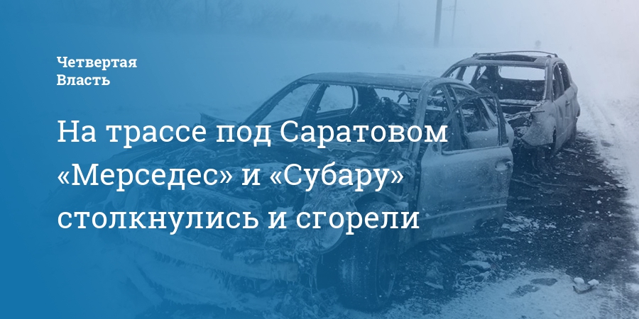 На трассе под Саратовом «Мерседес» и «Субару» столкнулись и сгорели