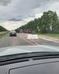 По их словам, «КамАЗ» с зерном перевернулся на трассе Саратов-Балашов неподалеку от районного центра. На фото и видео заметно, что большегруз лежит на правом боку, заняв практически целую полосу, а прицеп завалился в кювет. В этом месте идут ремонтные работы, что затрудняет другим участникам движения объезд препятствия (на проезжей части нарисована сплошная полоса, которую по правилам нельзя пересекать). Пострадал ли водитель, неизвестно. В ГИБДД пока инцидент не комментируют.