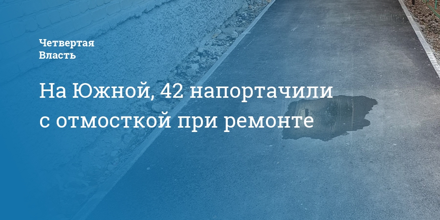 Как и в соседнем дворе - по ул. Южной, 40 - вдоль дома расположилась канава, где скапливается талая и дождевая вода. При этом у 3-го подъезда дома тротуар спланирован так, что на нем образуется корыто с водоотведением в сторону дома вместо палисадника. Перепад высот у «корыта» составляет 5 см при измерении 3-метровой рейкой.