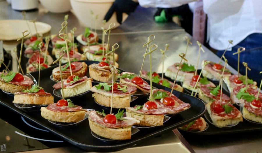 Гостей фестиваля угостили калачом во время дегустации «Волжский Ломоть». Кусочки калача можно было попробовать с начинкой из мусса из гречишного меда и топленого масла, а также с мясными деликатесами саратовских производителей.