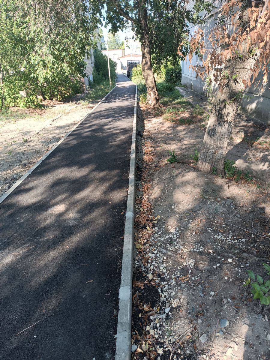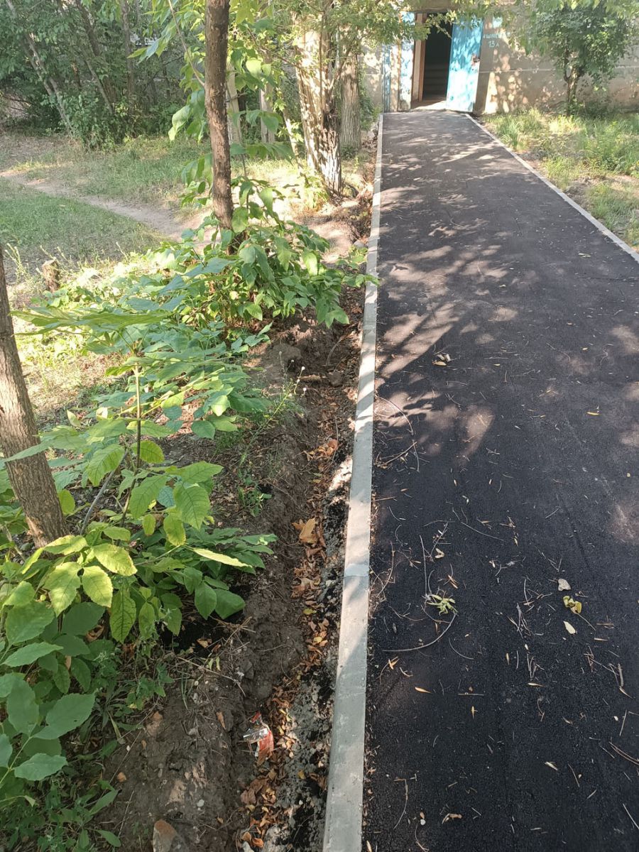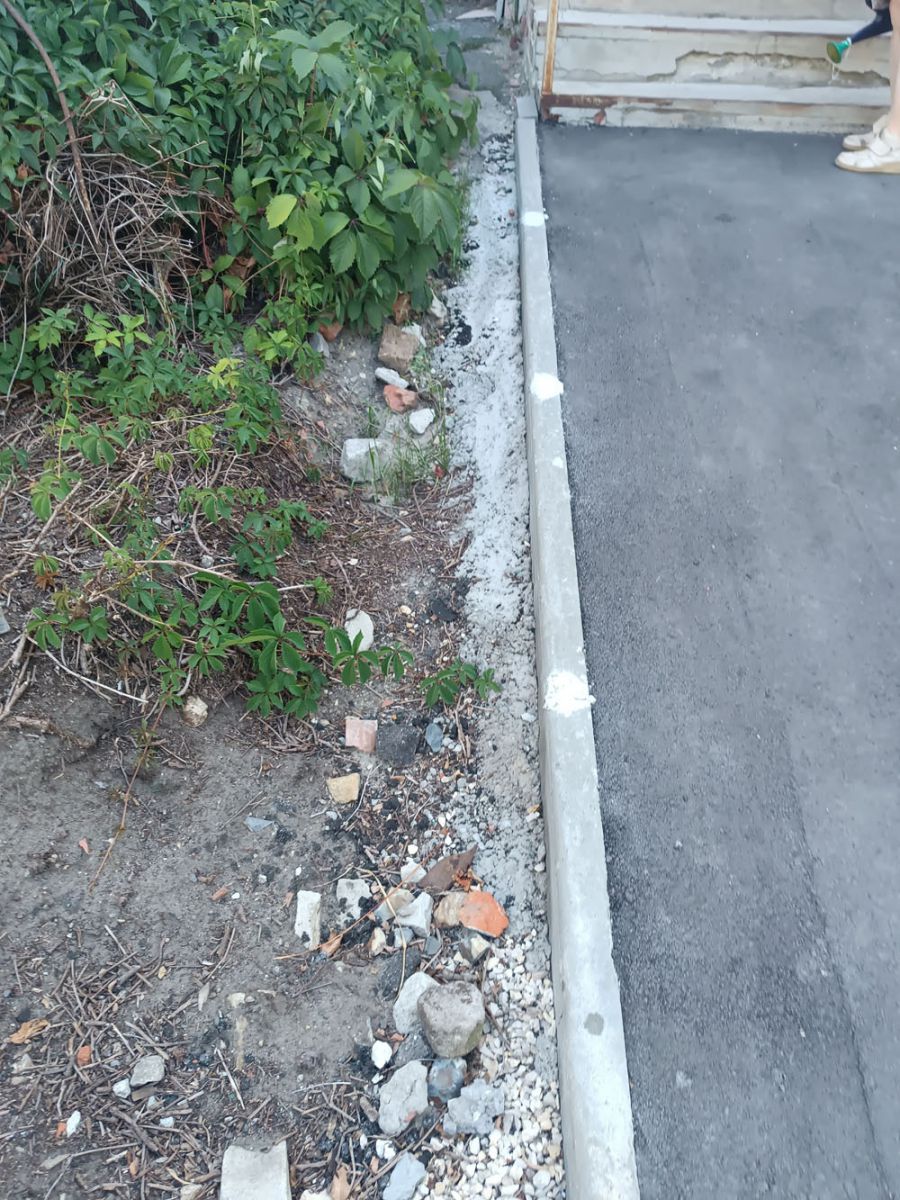 В результате ремонта часть входных групп и тротуаров была поднята, однако обратная отсыпка бетонных замков бортового камня произведена не была, на что следует обратить внимание местной администрации для исправления ситуации.