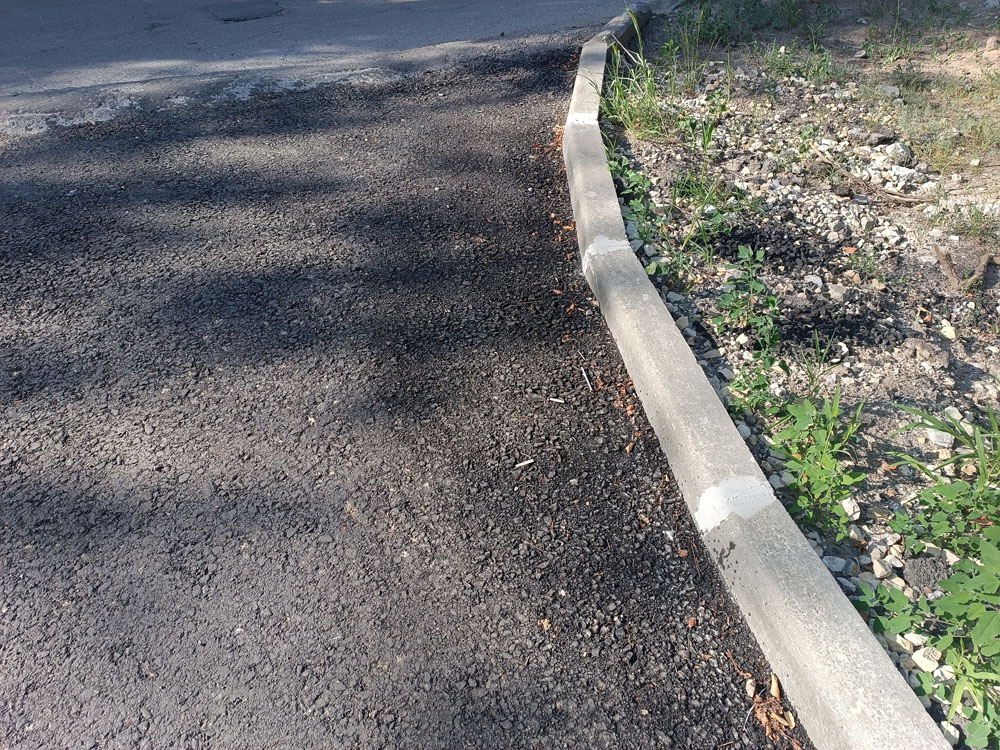 На въезде во дворы по Вишневой выкрашивается асфальт