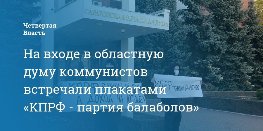 На входе в областную думу коммунистов встречали плакатами «КПРФ - партия балаболов»