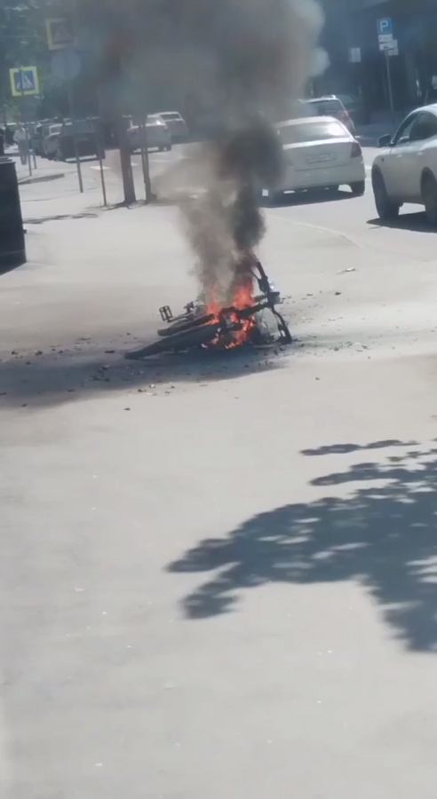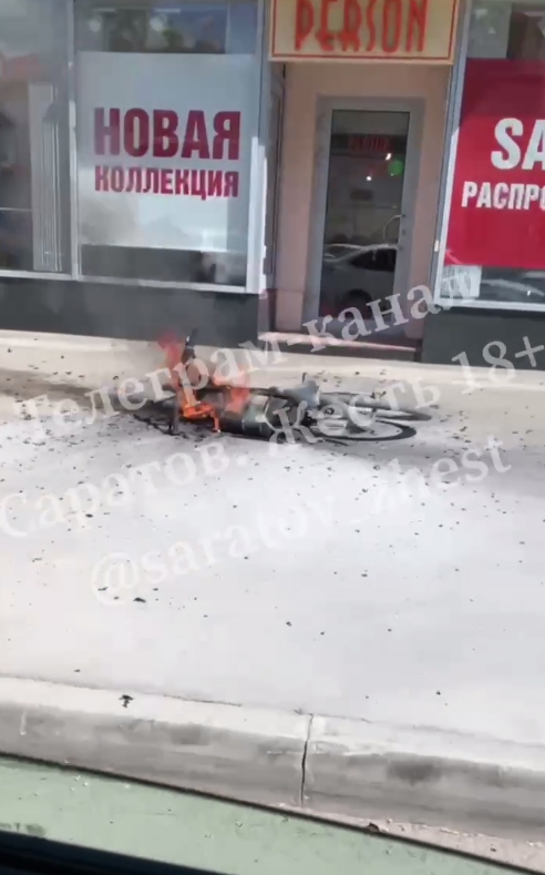 Вчера, 19 мая, в центре Саратова под человеком загорелся электровелосипед. Видео местные жители опубликовали в телеграм-канале «Саратов. Жесть».