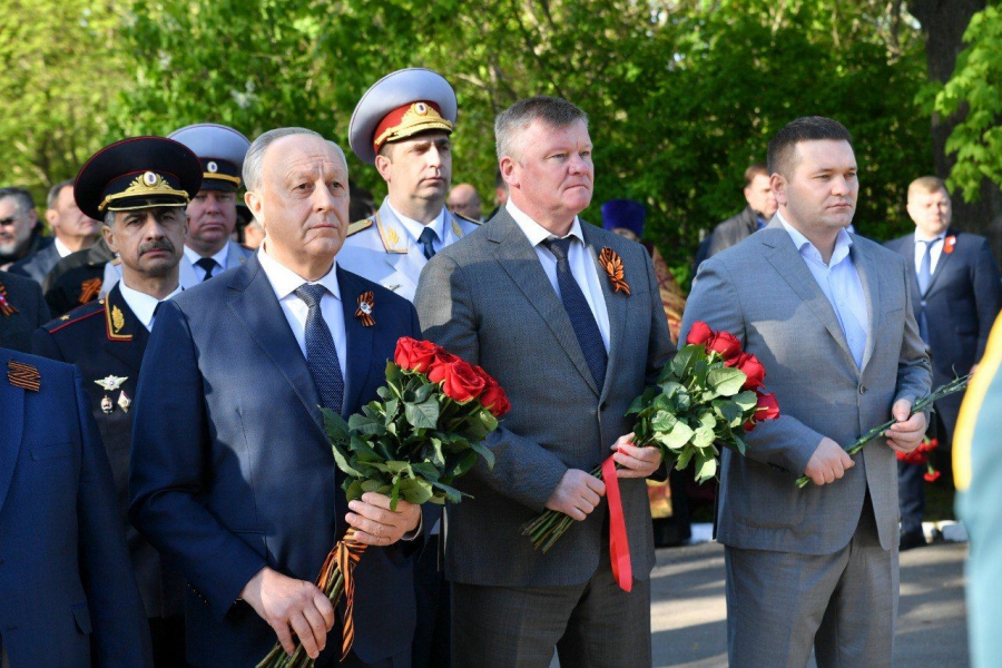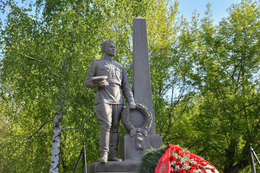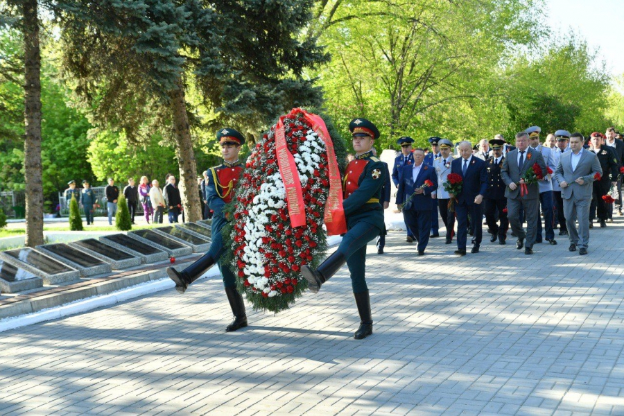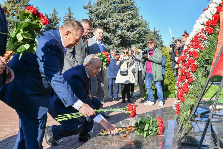 Сегодня утром на Воскресенском кладбище в Саратове состоялась церемония возложения цветов к Мемориалу защитникам Отечества, посвященная 77-летней Победы.