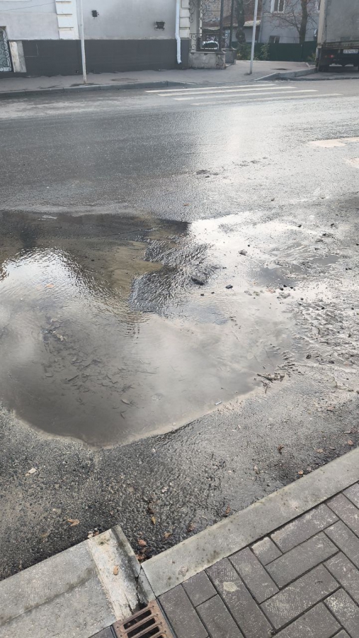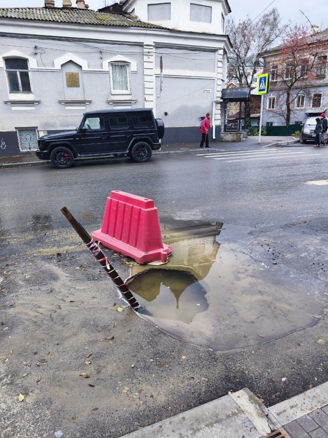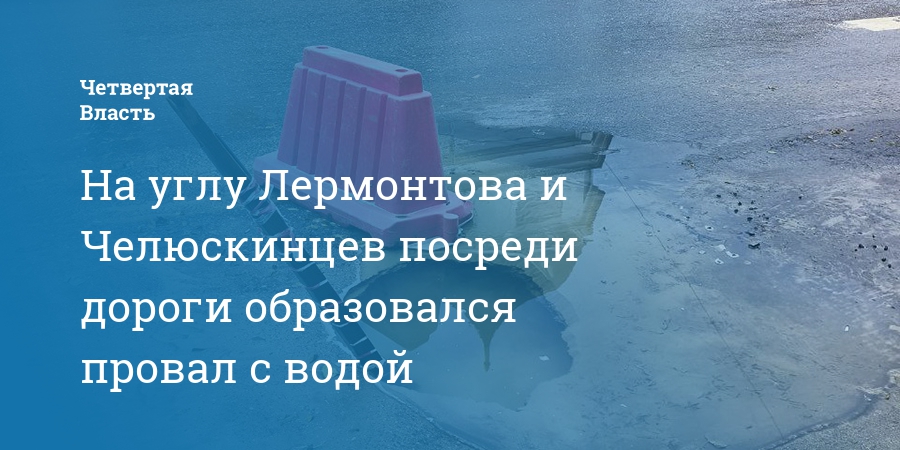 На углу Лермонтова и Челюскинцев посреди дороги образовался провал с водой