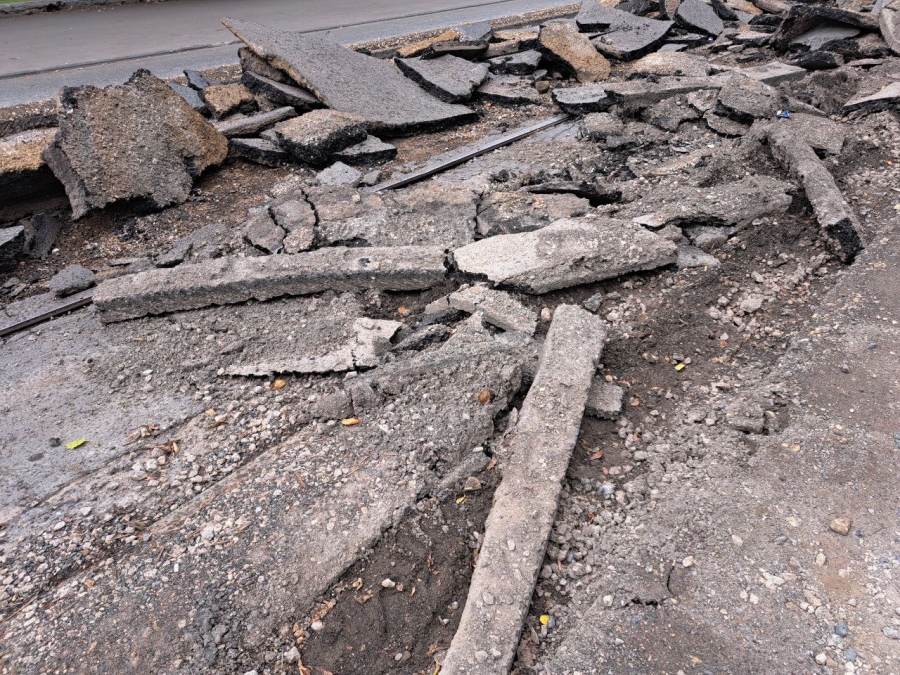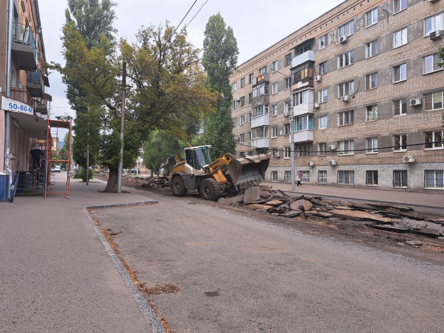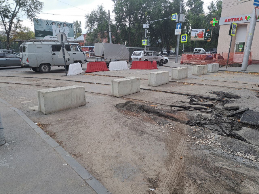 Однако по самой улице Степана Разина к работам приступили только недавно: рельсы целы, рабочие трудятся в самом начале квартала (от пересечения с Рабочей).