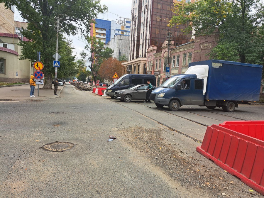 Улица перекрывалась в связи с реконструкцией трамвайных путей в рамках строительства скоростного трамвая. В данный момент соседняя улица Слонова полностью закрыта: идет процесс снятия старых рельсов. Корреспондент «Четвертой Власти» на месте работ заметил трактор, который расчищал асфальт на участке от Университетской до Степана Разина.