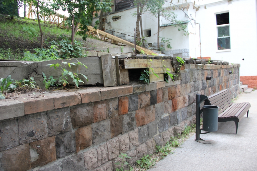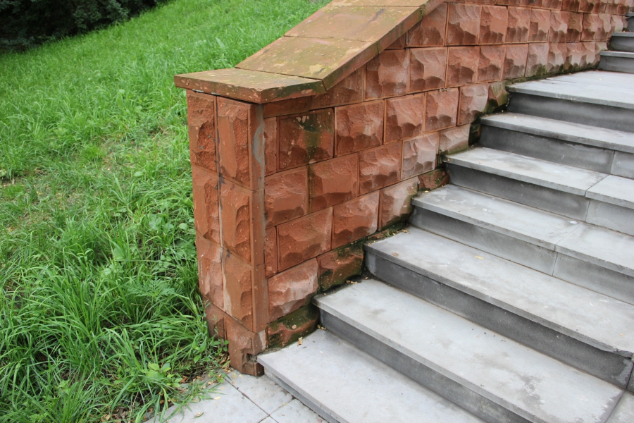По наблюдениям корреспондента «Четвертой Власти», в настоящее время облицовка ступеней из туфа на набережной приобрела зеленый цвет. Грибок распространился повсеместно: на поверхности камня, по бокам и на месте соприкосновения с травой. Кроме того, в некоторых местах материал начал разрушаться и обваливаться.