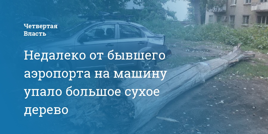 Недалеко от бывшего аэропорта на машину упало большое сухое дерево