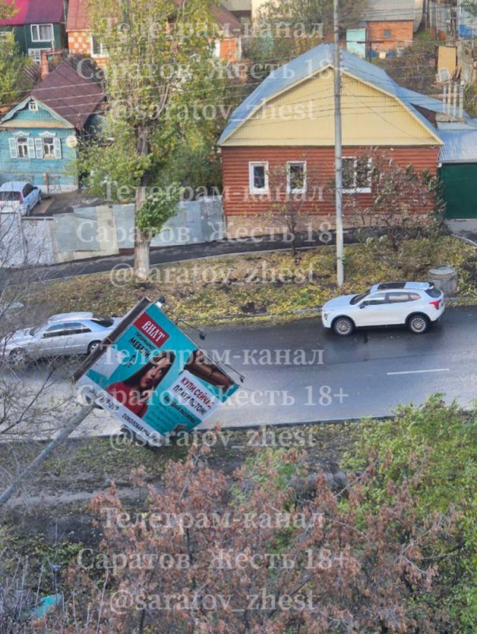 Непогода в Саратове. Ветер сносит столбы и рекламные щиты