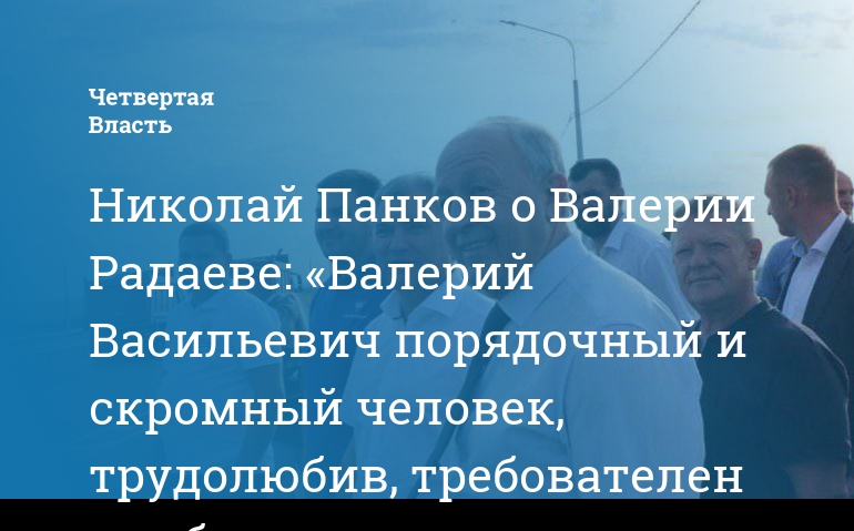 Николай Панков о Валерии Радаеве: «Валерий Васильевич порядочный и скромный человек, трудолюбив, требователен к себе и другим»