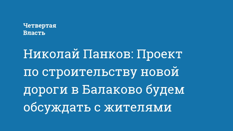 Николай Панков: Проект по строительству новой дороги в Балаково будем обсуждать с жителями