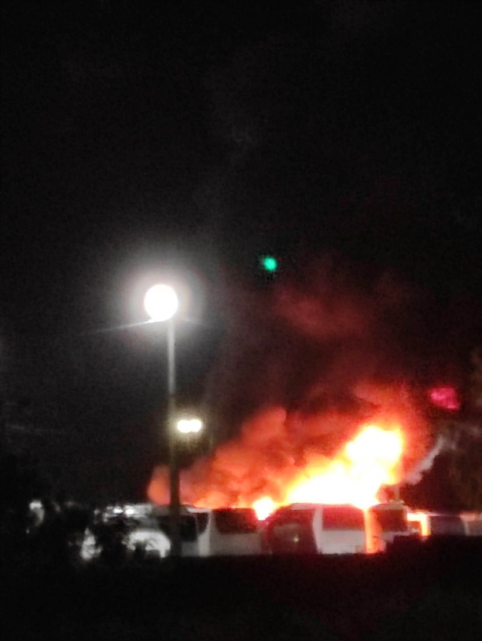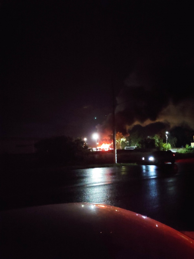 Очевидцы опубликовали фото с места происшествия. На кадрах видно, что пламя полностью охватило транспортные средства и слышны хлопки взрыва.