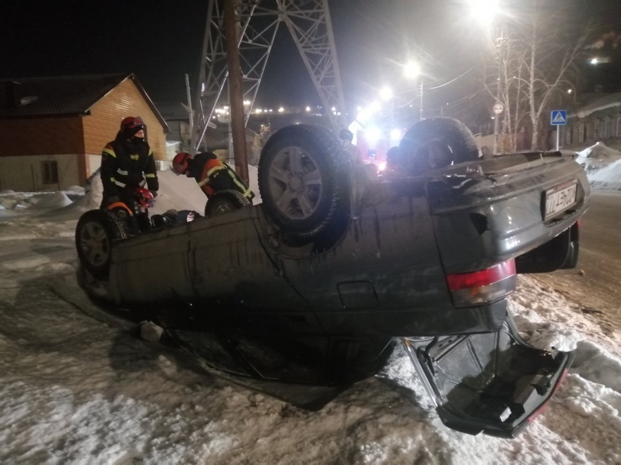 Ночью в центре Саратова «ВАЗ» опрокинулся на крышу