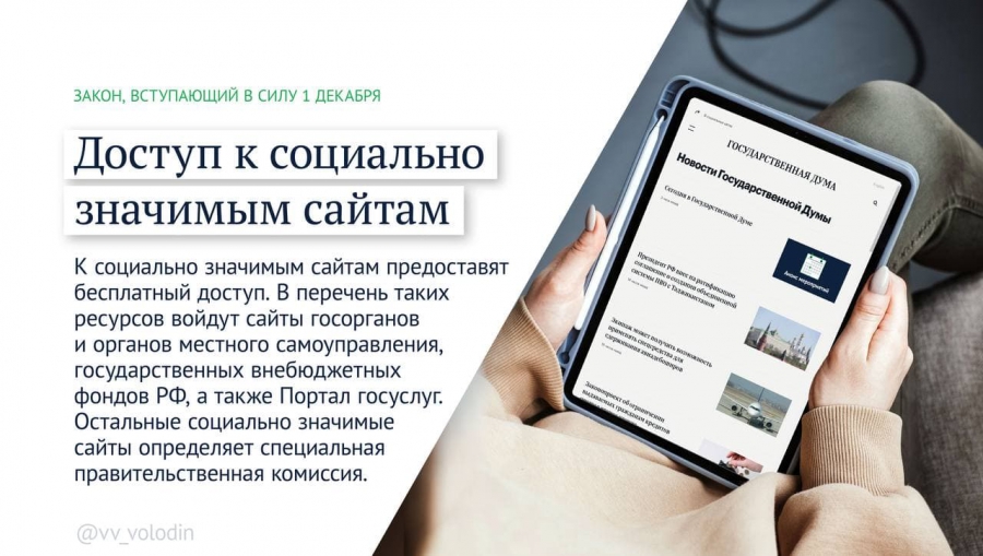 В декабре 2021 года в России станет легче зарегистрировать рождение ребенка, а к социально значимым сайтам предоставят бесплатный доступ. О нововведениях рассказал в своем телеграм-канале председатель Государственной думы Вячеслав Володин.