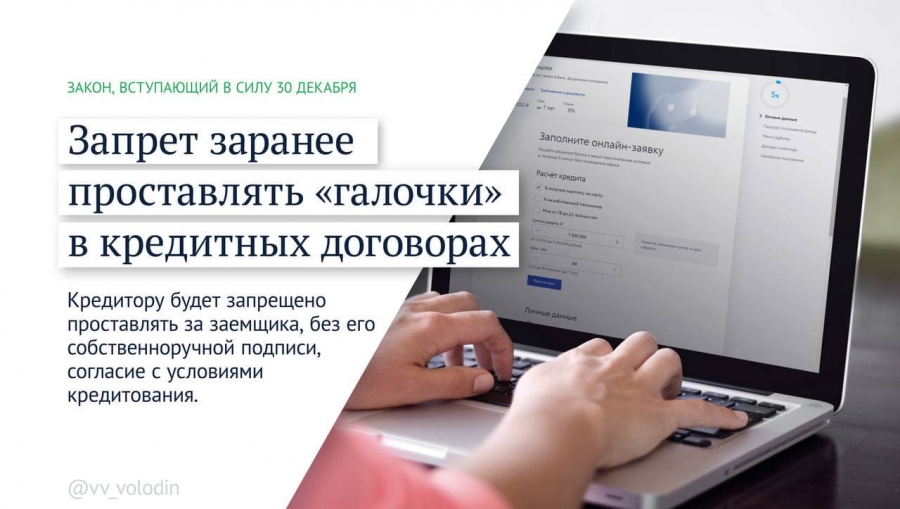 Другое нововведение защитит людей, которые обращаются за кредитом, от навязывания дополнительных услуг. Будет запрещено проставлять за заемщика в договоре отметки, означающие его согласие с предложенными условиями. Банки также не смогут требовать от заемщика постоянного наличия на счете неснижаемого остатка.