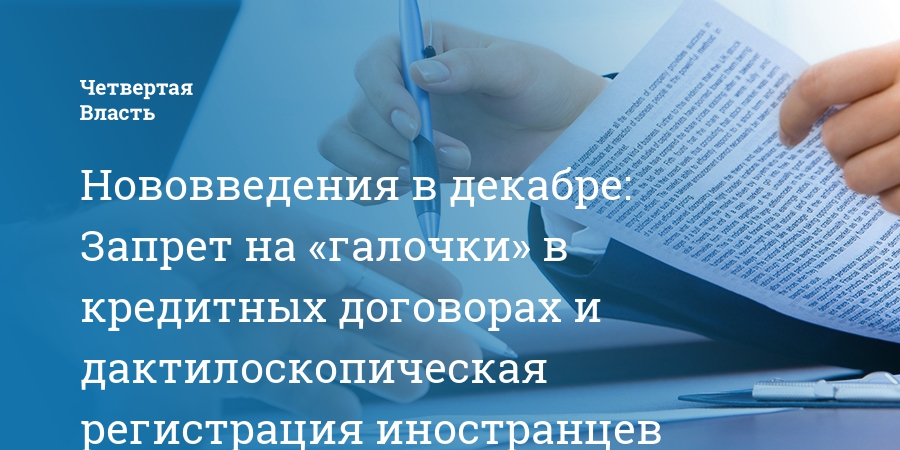 Нововведения в декабре: Запрет на «галочки» в кредитных договорах и дактилоскопическая регистрация иностранцев