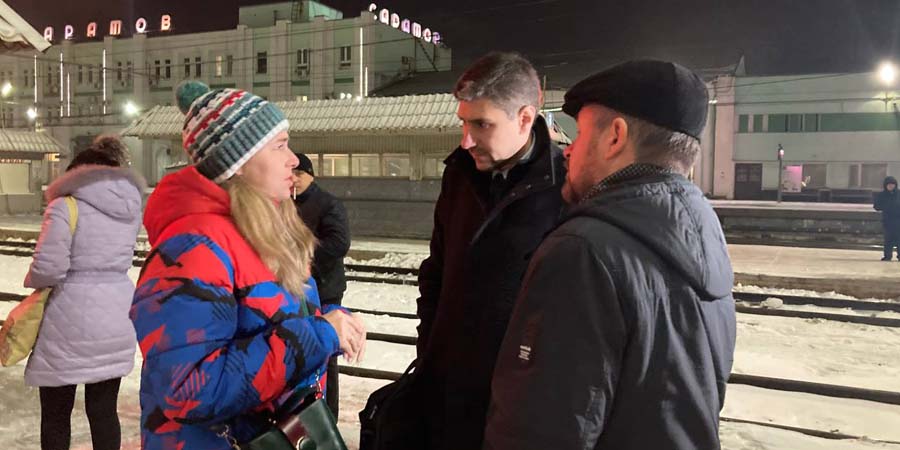 Сегодня генеральный директор АО «Саратовская ППК» Виктор Шубин и заместитель министра транспорта и дорожного хозяйства Саратовской области Евгений Куликов провели инспекционный рейд в электропоезде №6209 Примыкание – Трофимовский-1, связывающем Заводской и Ленинский районы областного центра.