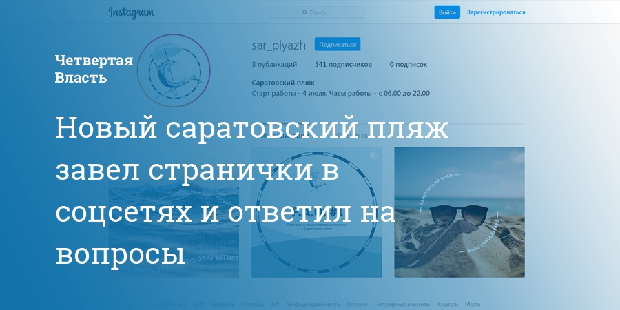 У места отдыха теперь есть страницы во «ВКонтакте» VK - https://vk.com/sar_plyazh и «Инстаграме*» Instagram* - https://instagram.com/sar_plyazh. Горожан призывают следить за новостями, которые будут там размещаться.