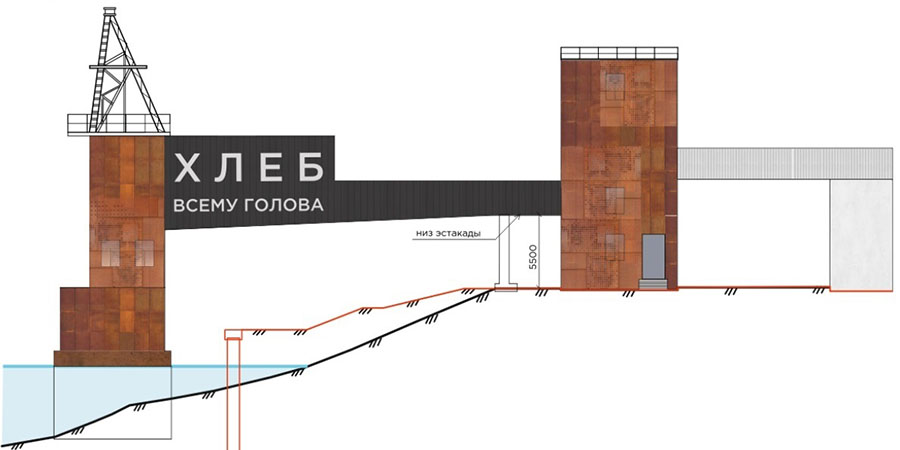 Сейчас между улицами Дегтярная и Большая Садовая расположен Саратовский комбинат хлебопродуктов. Комитетом по архитектуре подготовлено предложение внести изменения в конструкцию так называемых норийных башен. Эстакады предлагается поднять на 4,5 метра вверх, чтобы обеспечить беспрепятственный проход по будущим пешеходным дорожкам и проезду. Для улучшения внешнего облика объекта может быть использована обшивка фасадов кортеновскими стальными панелями. Кортен — это легированная сталь, устойчивая к атмосферной коррозии, меняющая оттенок покрытия с течением времени. Эстакаду, соединяющую верхнюю и нижние вышки, предлагается обшить черным профилированным металлом и разместить на его поверхности мурал (картина или огромное граффити) «Хлеб всему голова». Новый фасад может быть дополнен архитектурной подсветкой.