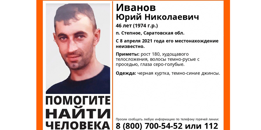 В Советском районе Саратовской области найден погибшим 46-летний Юрий Иванов. Об этом сообщает поисковый отряд «Лиза Алерт».