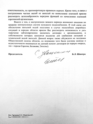 Помимо этого, частые жалобы населения касаются начисления платежей, в связи с чем губернатора просят рассмотреть целесообразность возвращение функций по начислению платежей в Саратов. Сейчас этим занимается иногородняя структура в составе «Т Плюс». Ранее ОП уже заостряла внимание губернатора на том, что компания начисляет завышенную плату за тепло и горячее водоснабжение, а также создала систему, при которой потребителю практически невозможно добиться перерасчета, не реагирует на запросы населения и власти на обеспечение достоверных начислений, доступного и эффективного абонентского обслуживания. В выставлении завышенной платы и волоките с перерасчетами можно усмотреть экономическую заинтересованность коммунальной структуры (прим. ред.).