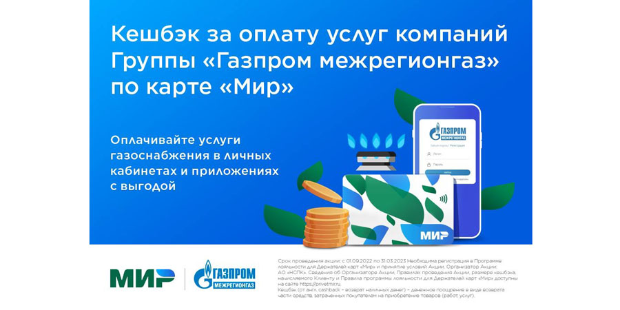 Платежная система «Мир» и Группа Газпром межрегионгаз совместно запускают акцию «Кешбэк за оплату коммунальных услуг картой «Мир».