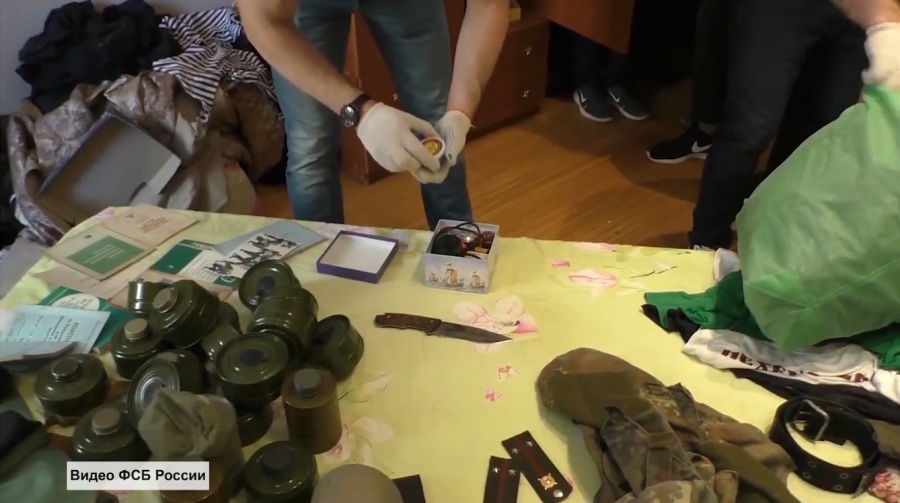 В Саратове задержанные по подозрению в создании экстремистского сообщества хранили у себя множество предметов с нацистской атрибутикой. Новые кадры задержания подозреваемых обнародовала пресс-служба регионального управления ФСБ.