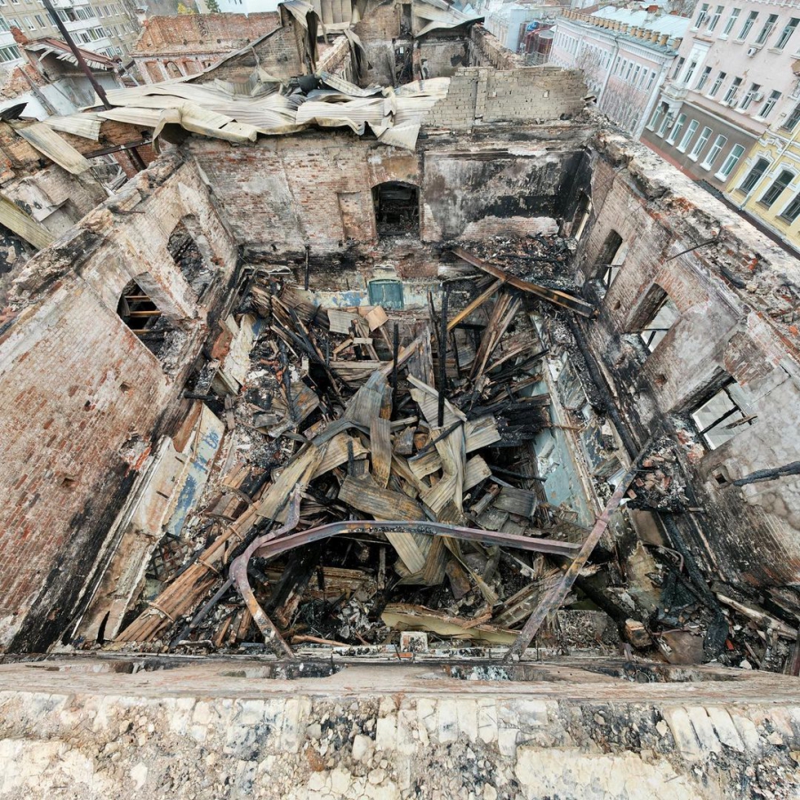 Отметим, что блогер Никита Бобровский на странице в «Инстаграме*» опубликовал фотографии, сделанные с помощью летательного аппарата (дрона). Судя по снимкам вида сверху, от здания, по сути, остались только стены, а перекрытия трех этажей упали, нижний этаж погребен под руинами. Крыша при этом полностью отсутствует.