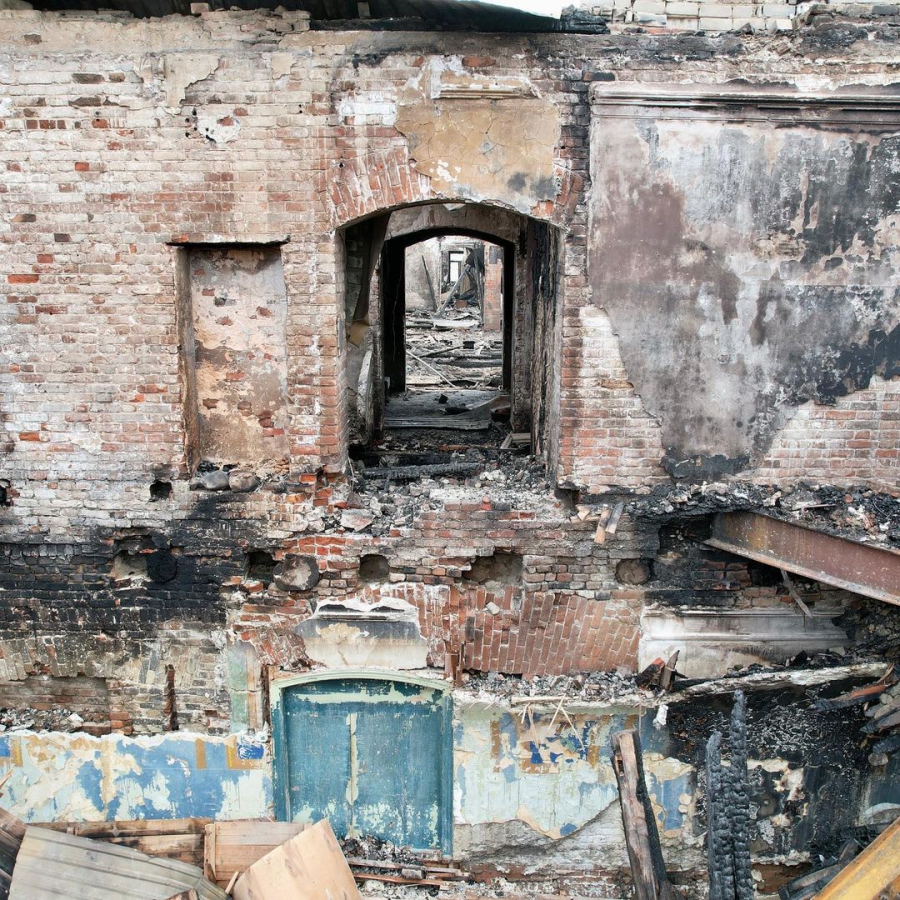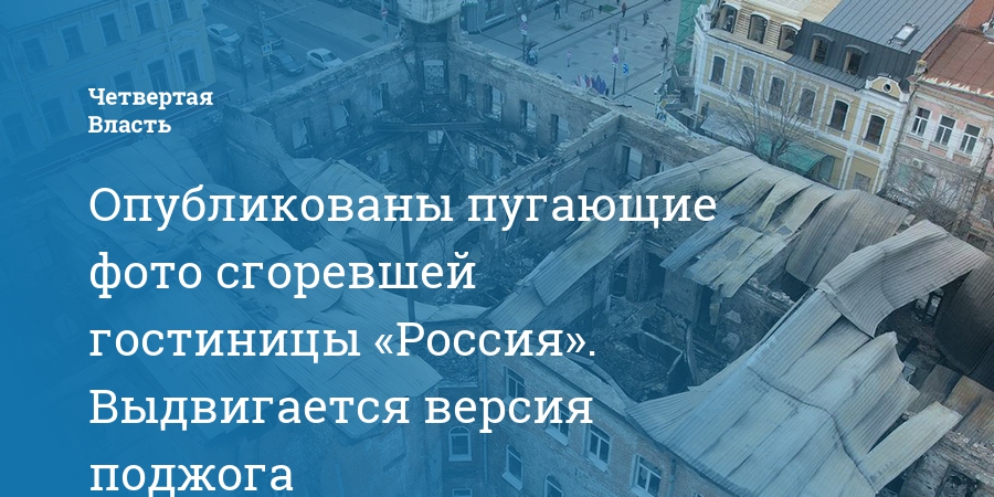 Опубликованы пугающие фото сгоревшей гостиницы «Россия». Выдвигается версия поджога