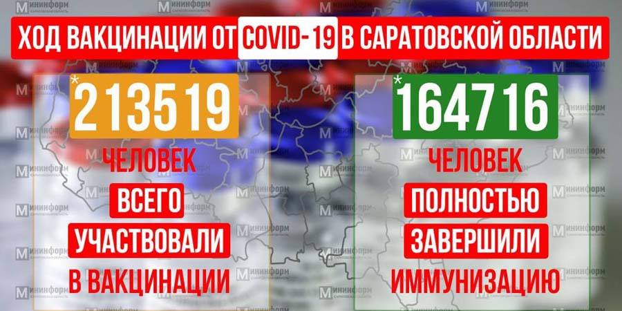 В Саратовской области от коронавирусной инфекции получили вакцину 213 519 человек. Соответствующая информация появилась в тегерам-канале «Время Саратовское. Официально».