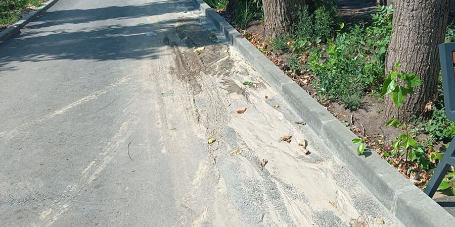 Отремонтированный в 2024 году двор по улице Саперной, 14 в Саратове утопает в грязи. При проведении работ подрядчику не удалось искусственными неровностями предотвратить попадания воды с дороги по улице Саперной во двор. По этой причине во время дождей вода течет транзитом по территории двора, нанося в него грязь с дороги. Грязь застаивается прямо у входных групп, не давая местным жителям комфортно подойти к подъездам. Как отметили сотрудники «Дорожного контроля», инспектирующие отремонтированные дворы, подрядчику здесь удалось вместо водоотведения добиться «водоприведения».