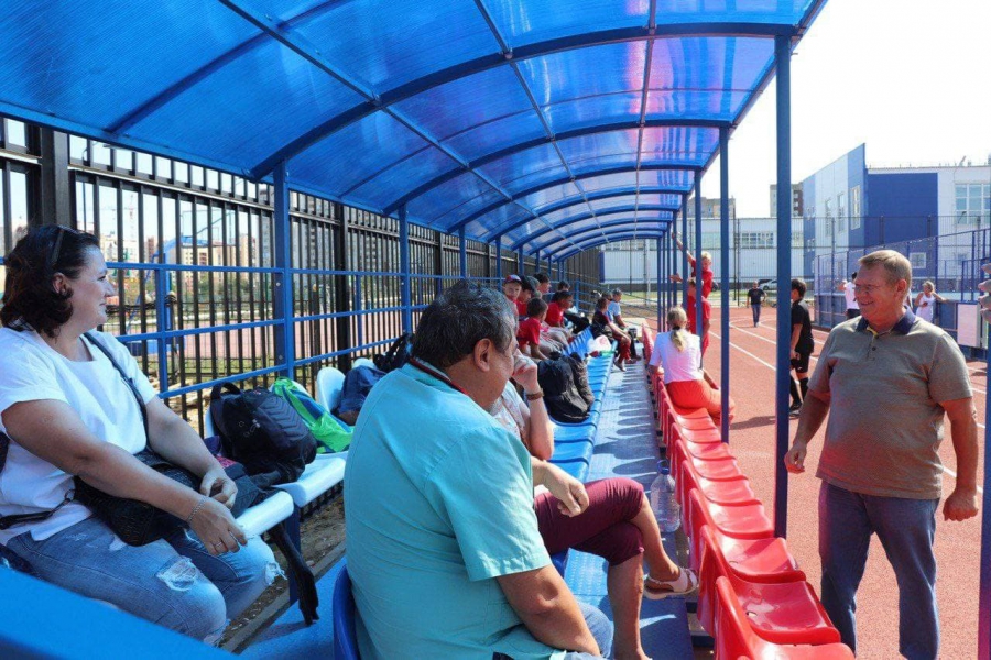 Спорткомплекс полностью готов. Здесь есть тренажёры, беговые дорожки, игровые площадки, крытая трибуна для болельщиков. Он будет бесплатным и открытым с утра до позднего вечера (для этого налажено освещение). Поговорил со спортсменами, тренерами, родителями. Развитие спорта важно для всех.