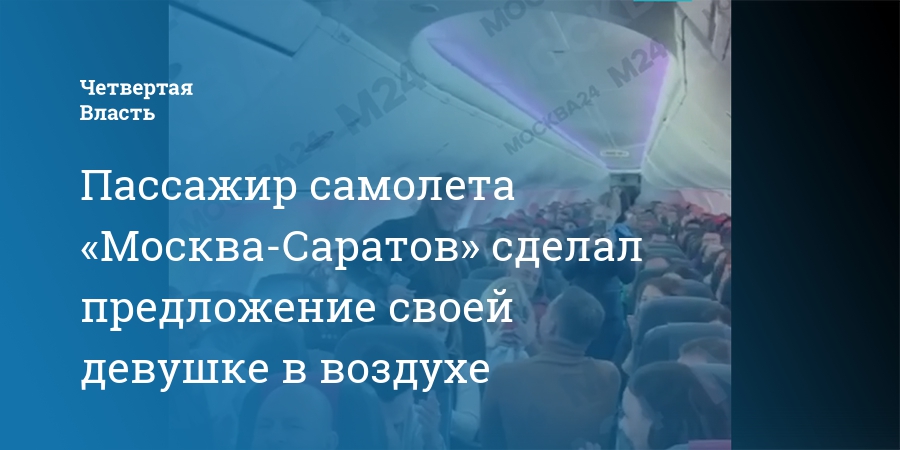 Во время полета самолета рейсом «Москва-Саратов» пассажир сделал предложение своей девушке. Видео признания в воздухе опубликовал информационный канал «Москва 24».