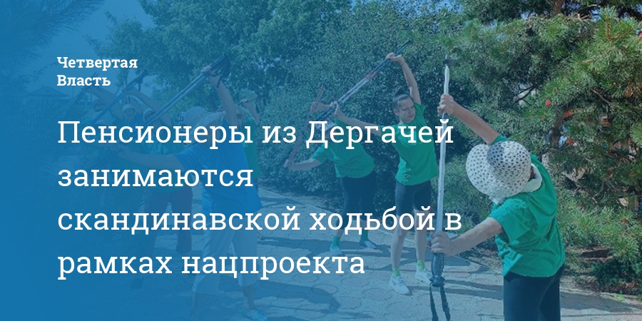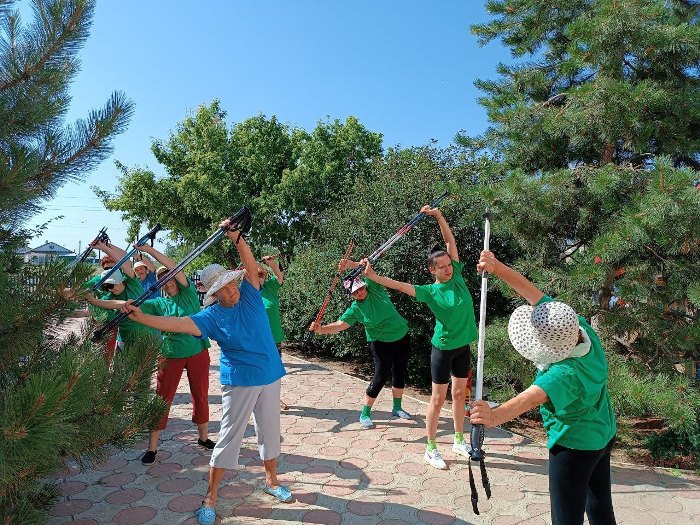 Пенсионеры из Дергачей занимаются скандинавской ходьбой в рамках нацпроекта