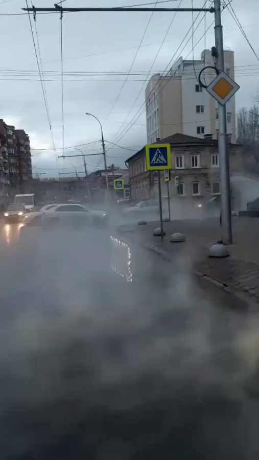 Трубу с кипятком прорвало на пересечении улиц Вавилова и Железнодорожной, неподалеку от Кировского районного суда.